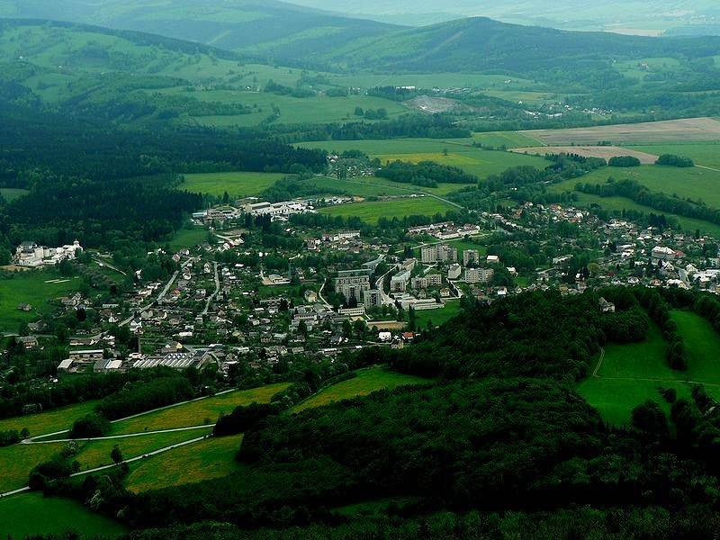 Zlaté HoryMěstečko pod horami s bohatou a pohnutou historií. Významné poutní místo Panny Marie Pomocné. Kulturní památky Edelštejn, Koberštejn – zříceniny hradů. Sanatorium Edel – speleoterapie. Rozsáhlé pozůstatky po dolování na Příčném vrchu. Asi 2km od města leží přírodní památka Černé jezero. Biskupská kupa rozhledna císaře Františka Josefa I. | |